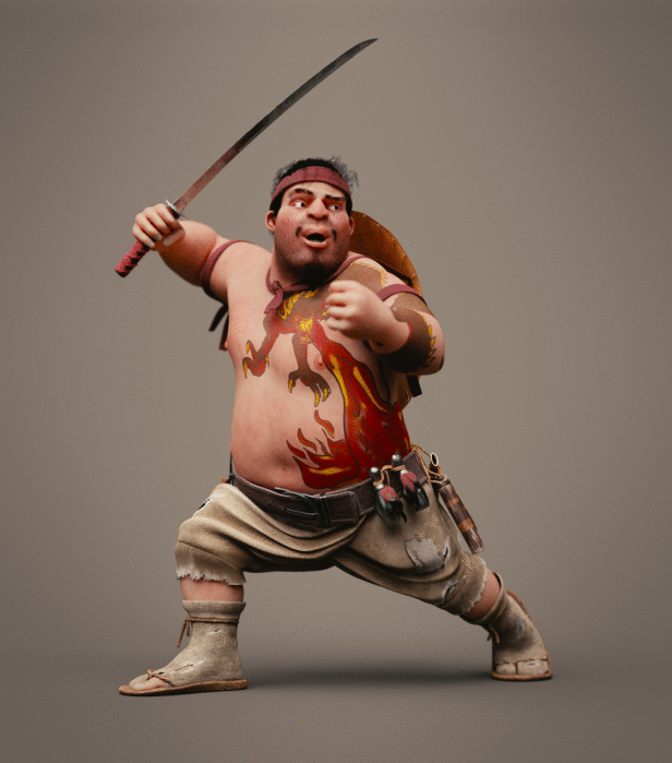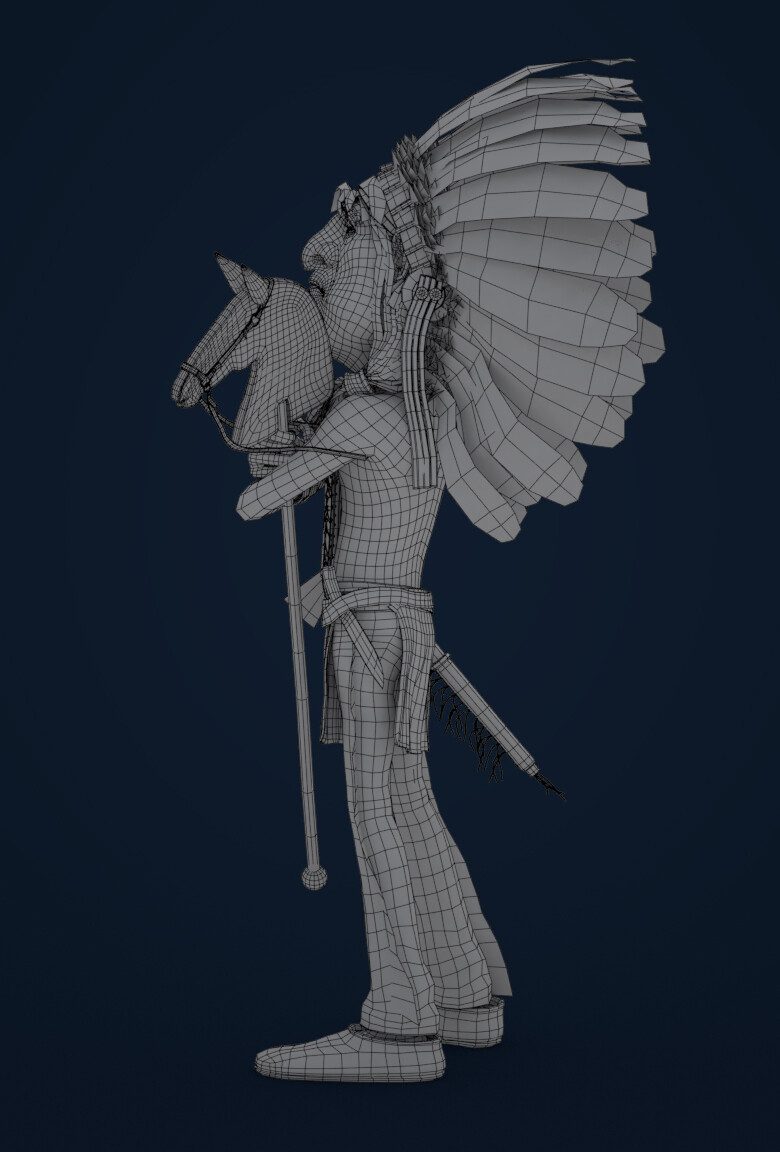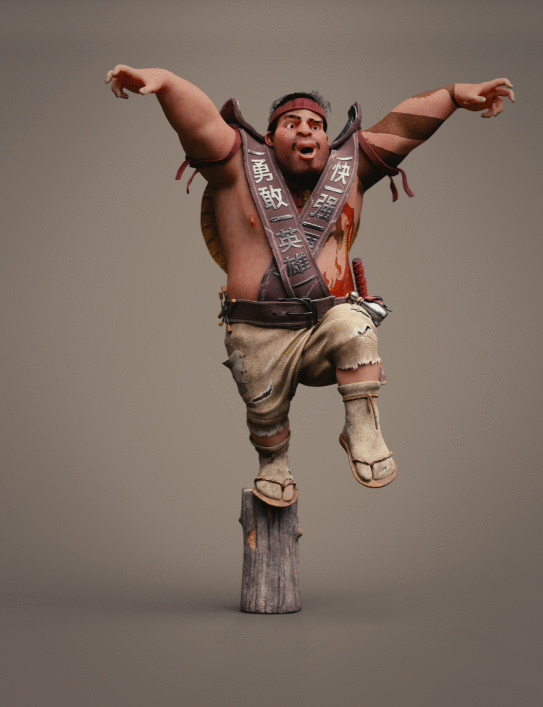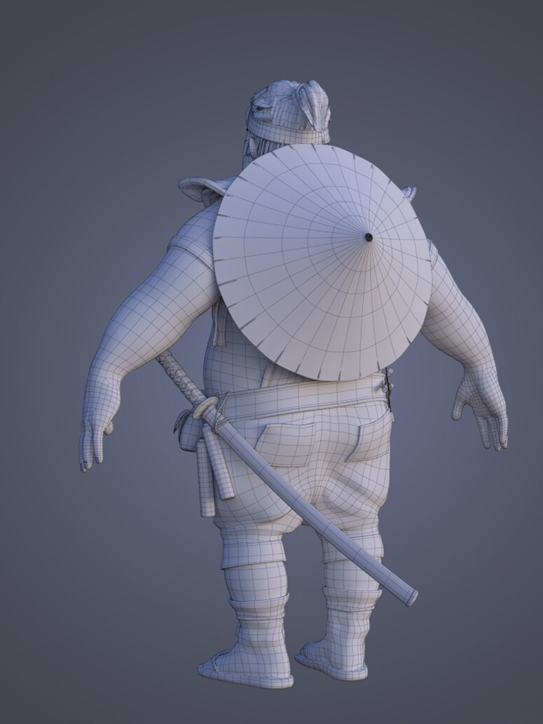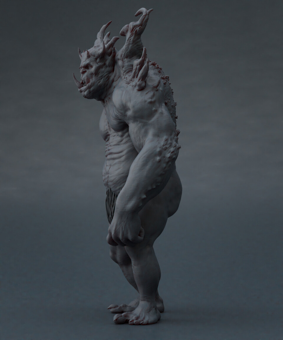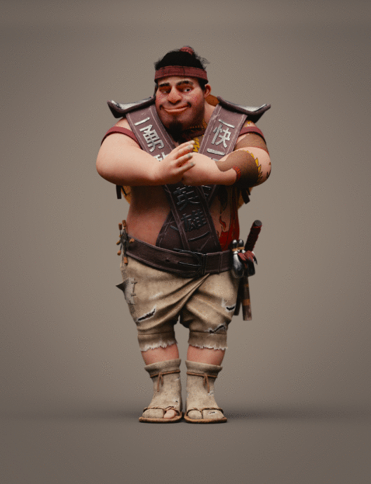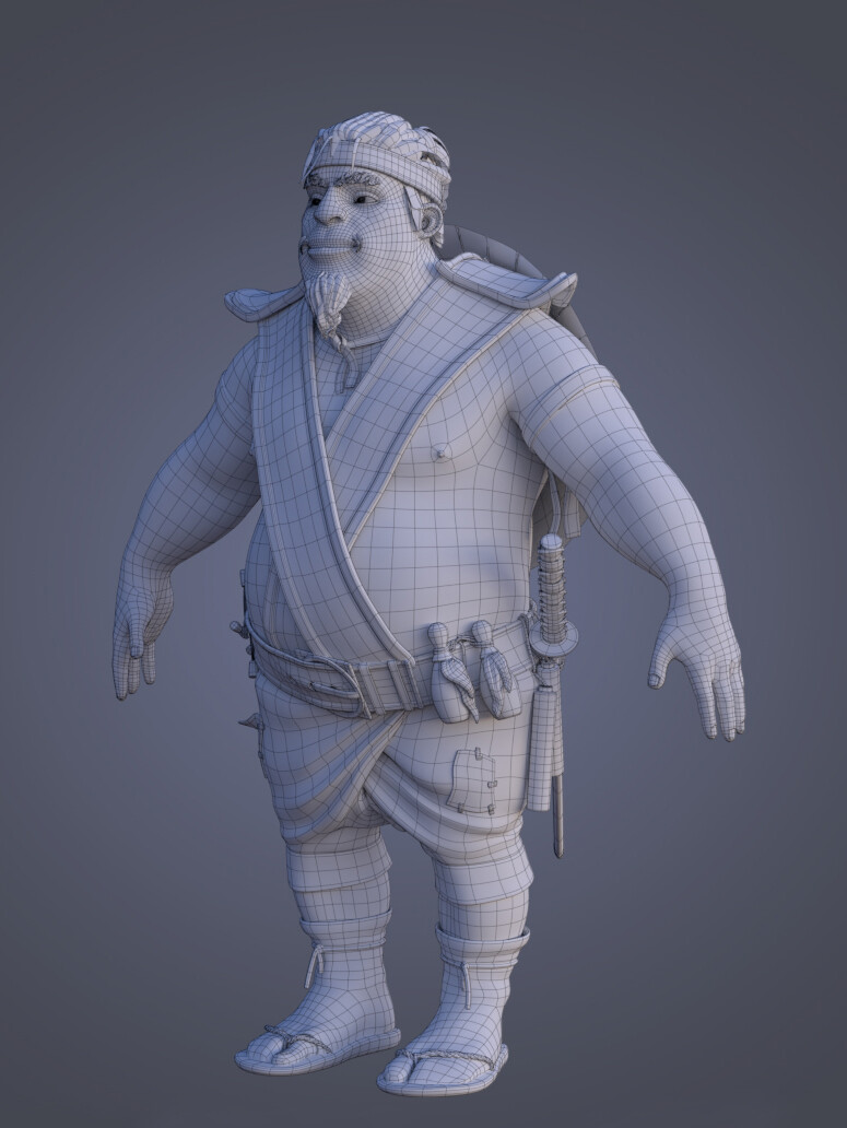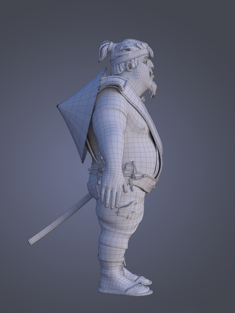 Realicé todas las partes artísticas, desde el concepto hasta el rigging para posar el personaje, pasando por la escultura en alta poligonización, el modelado de la topología baja y la texturización.