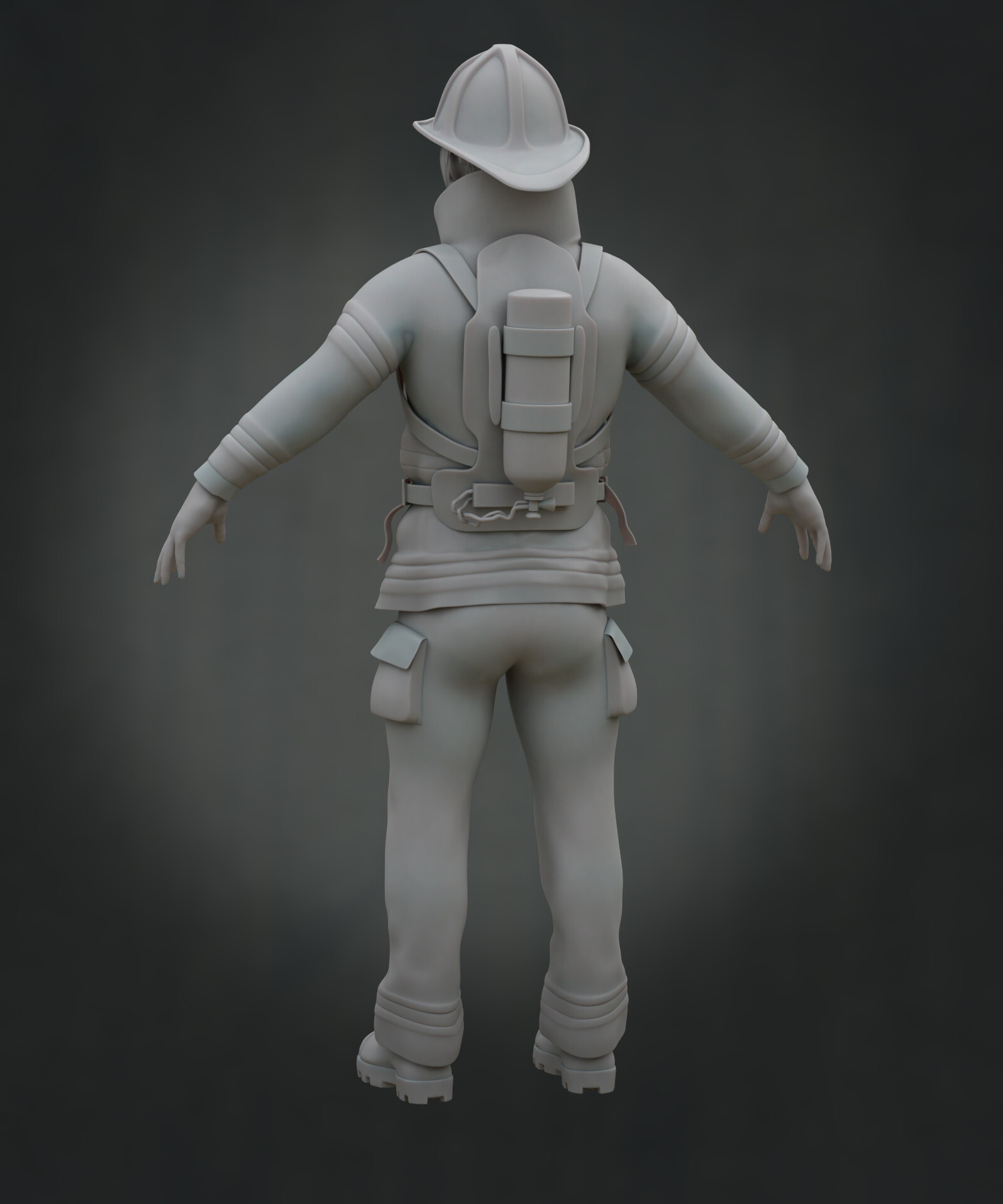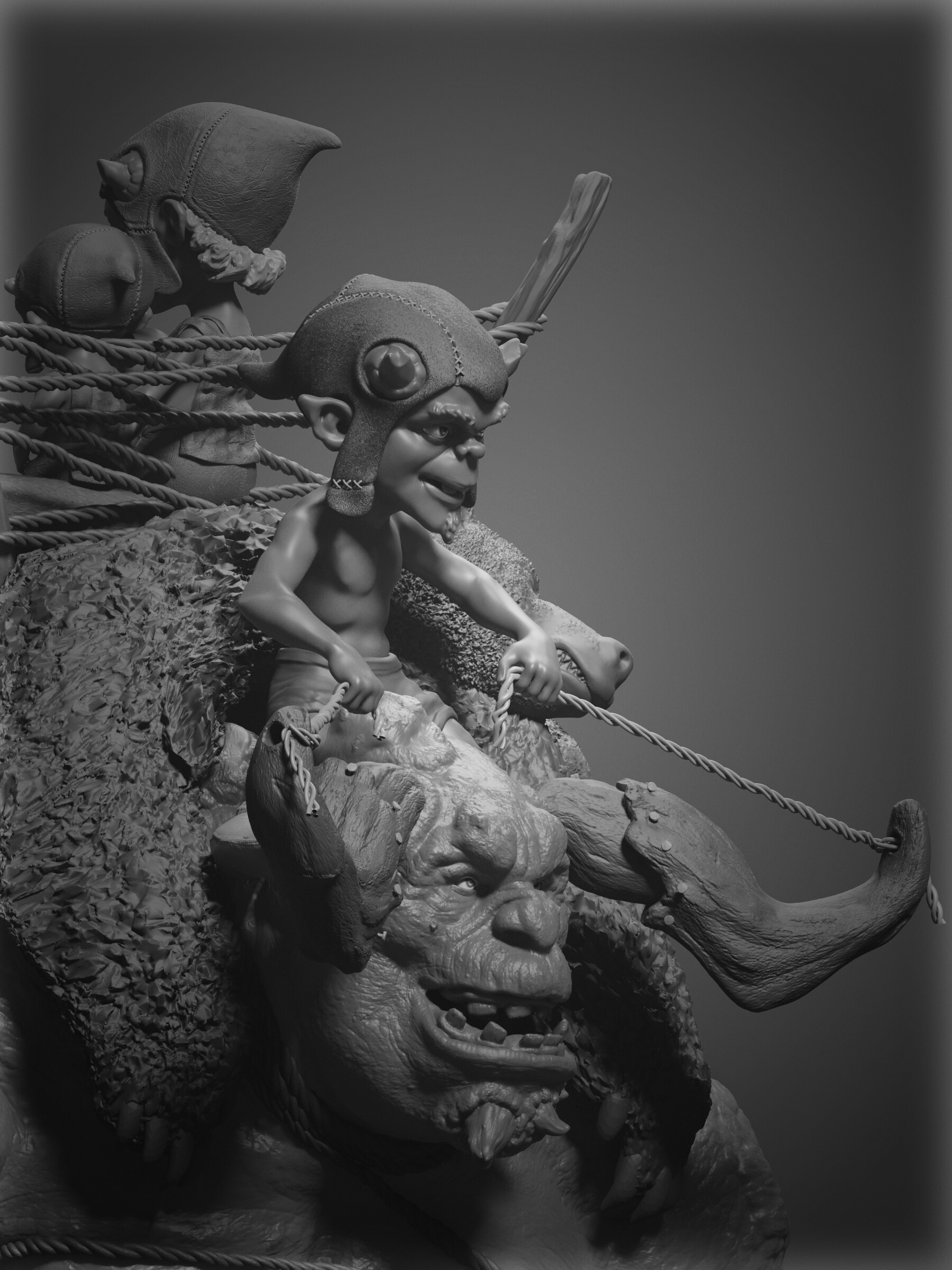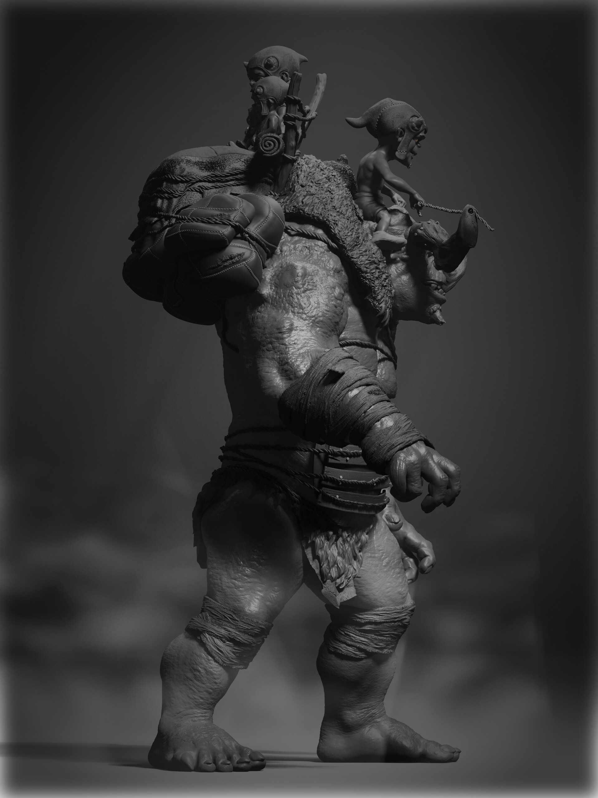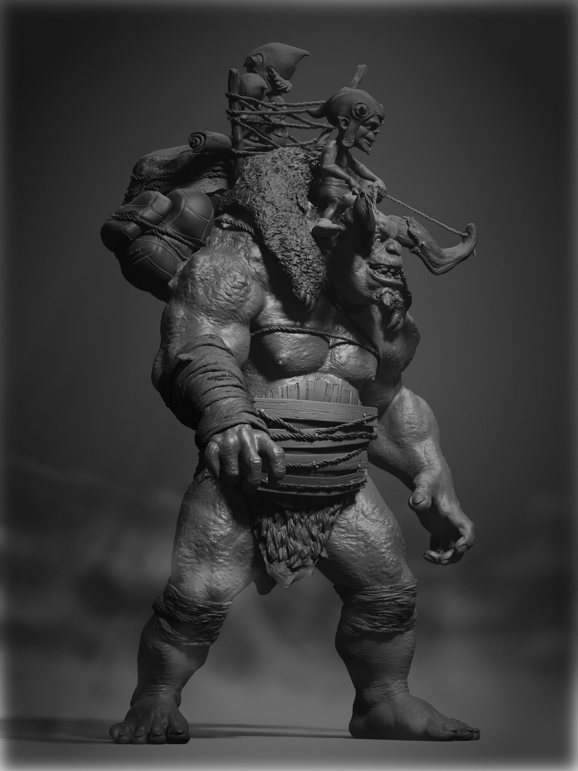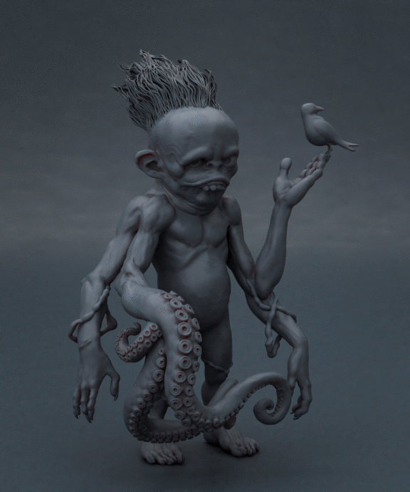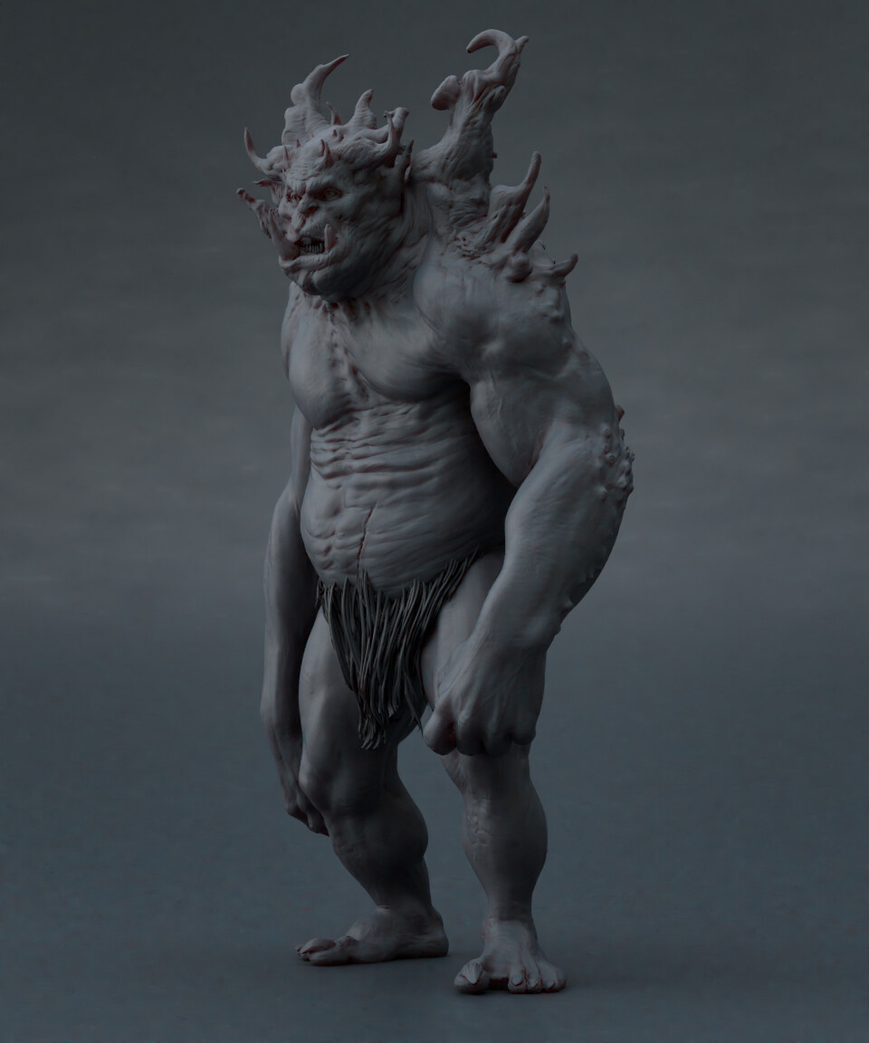 Realicé todas las partes artísticas, desde el concepto hasta el rigging para posar el personaje, pasando por la escultura en alta poligonización, el modelado de la topología baja y la texturización.