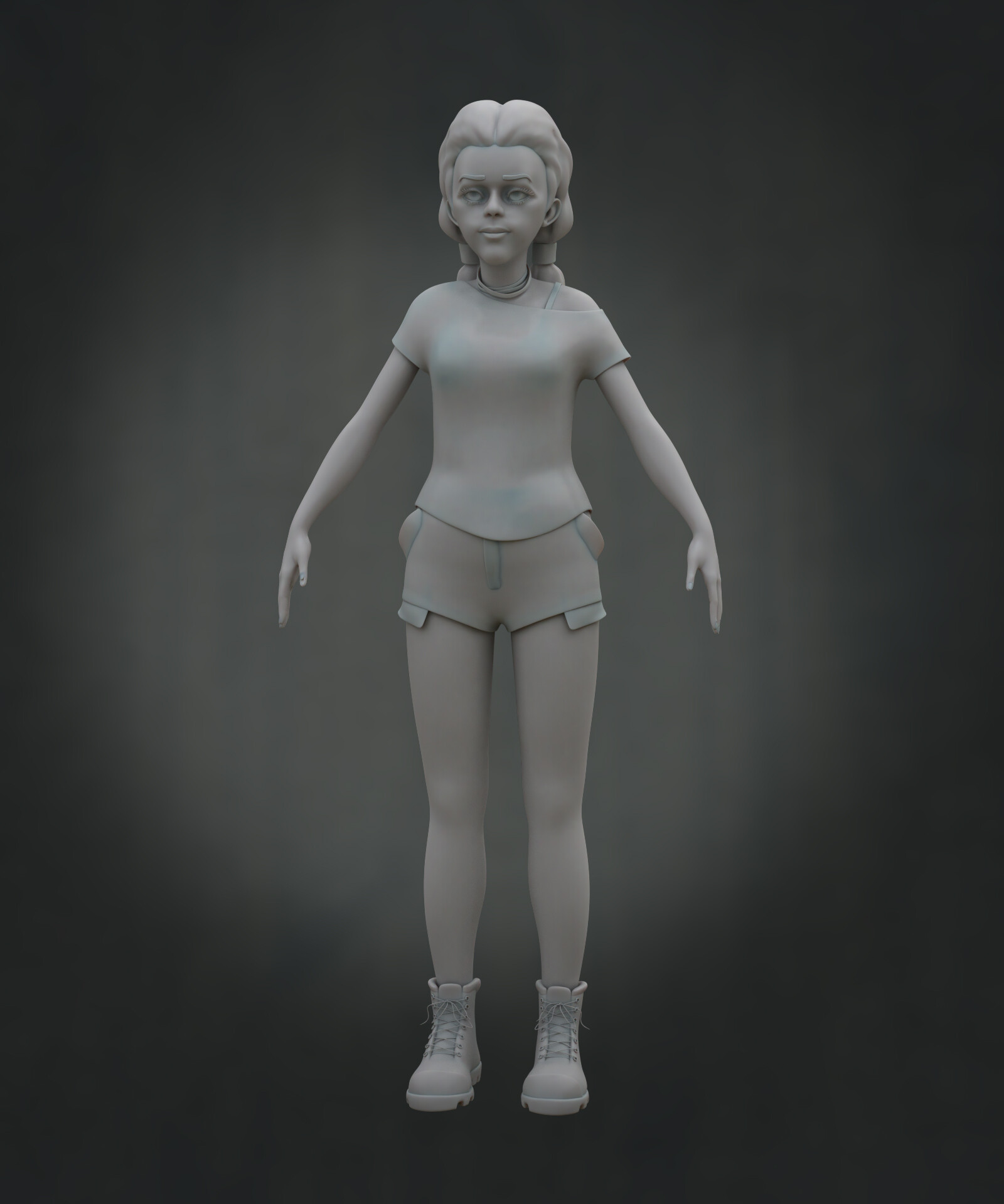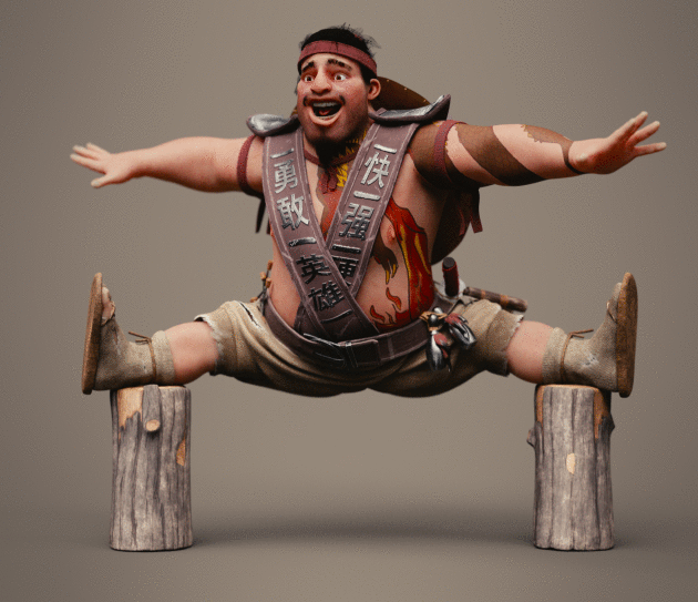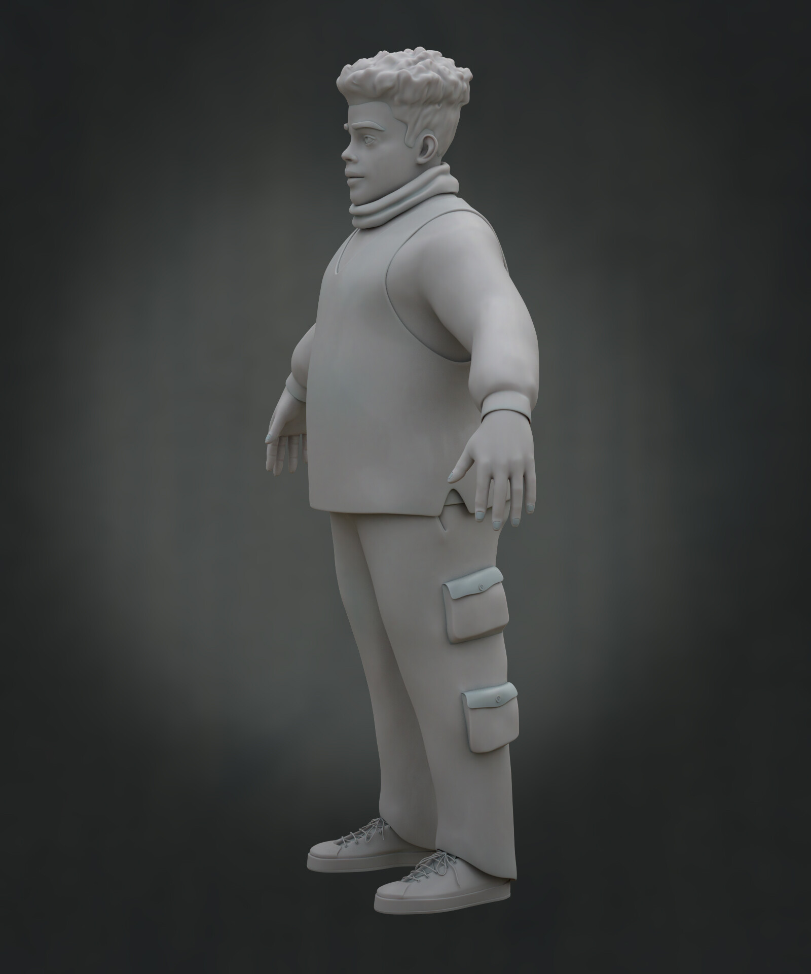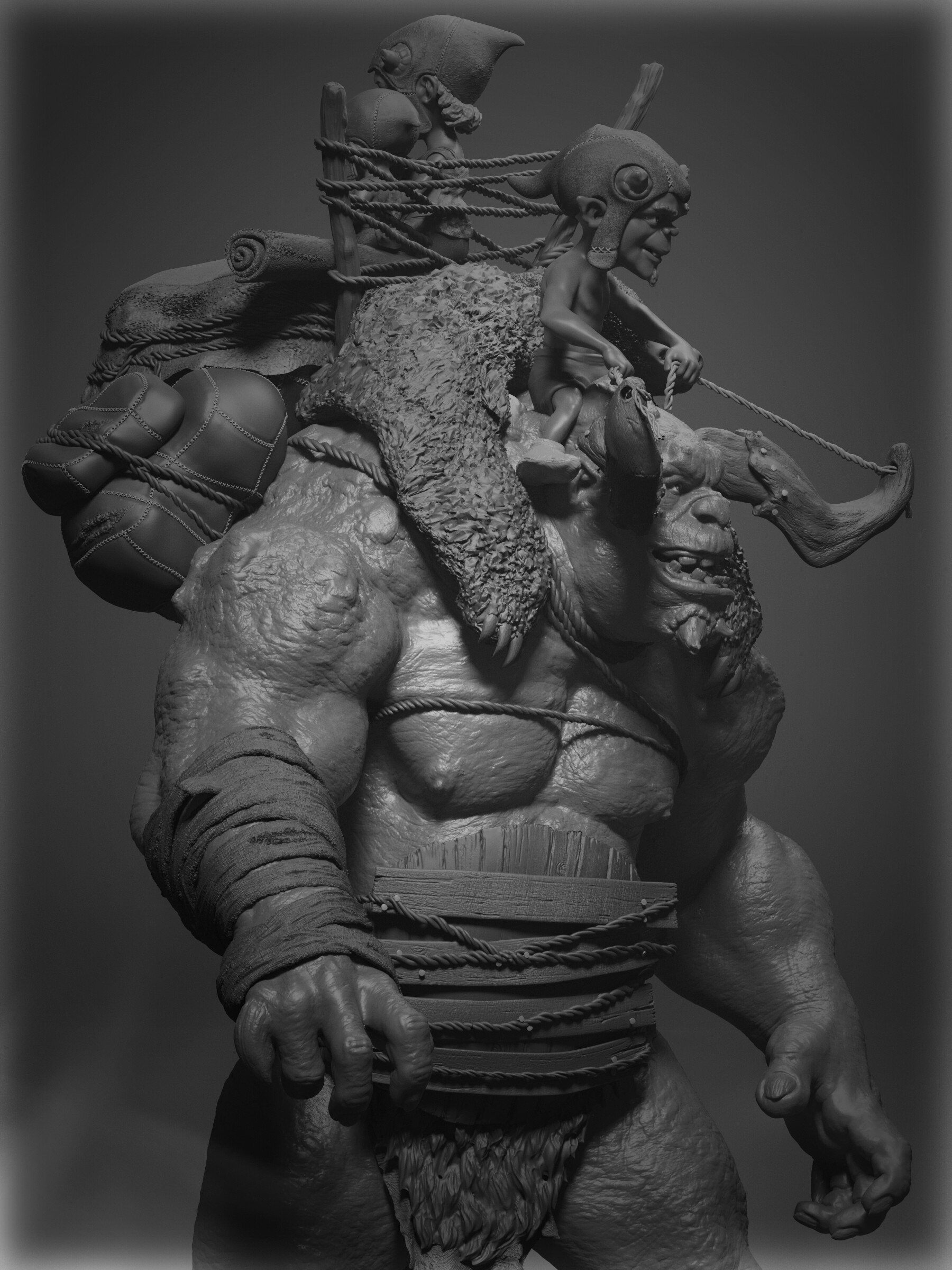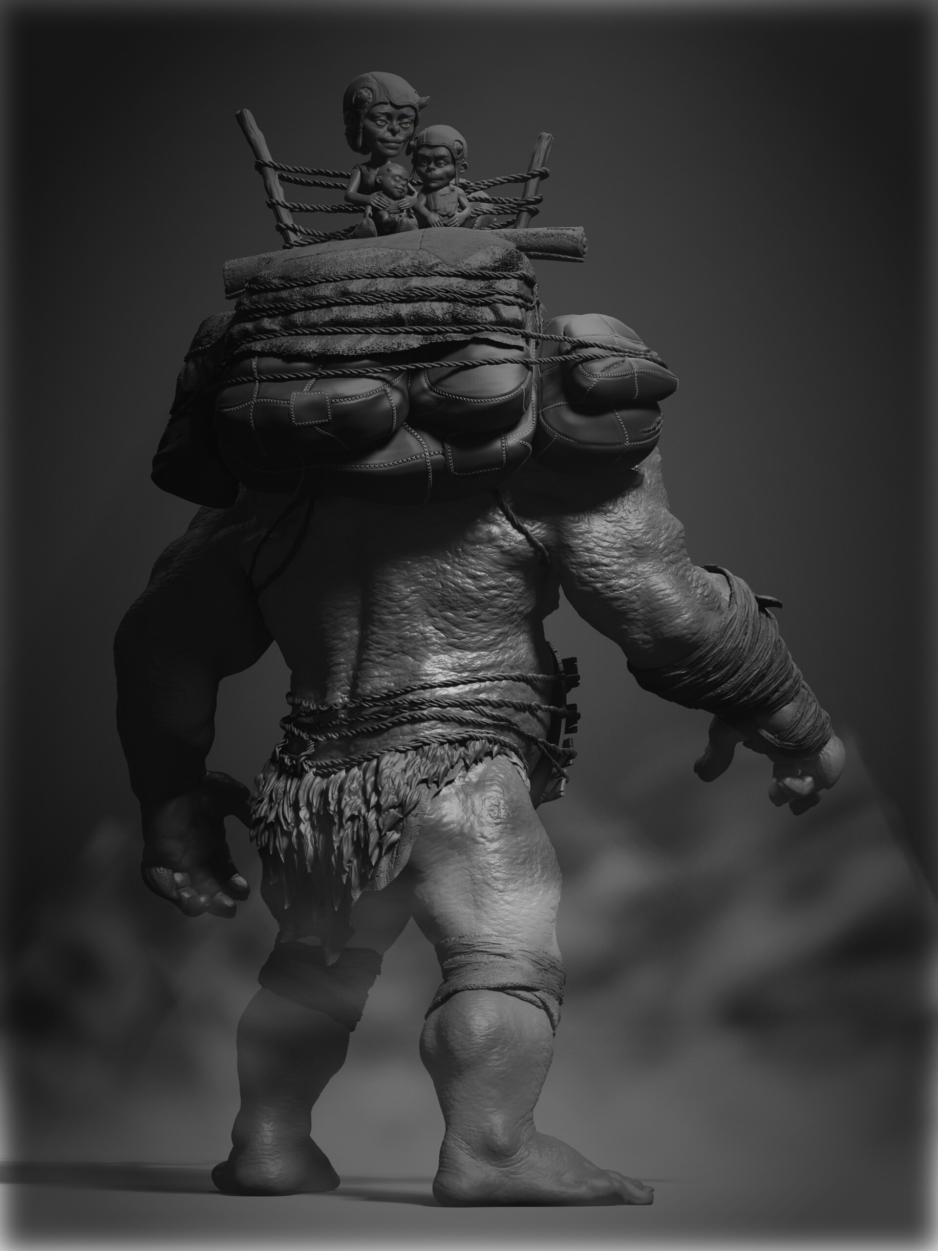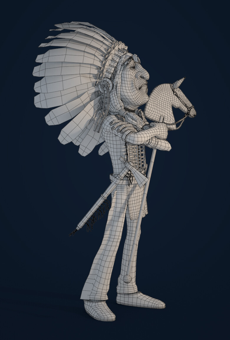 Realicé todas las partes artísticas, desde el concepto hasta el rigging para posar el personaje, pasando por la escultura en alta poligonización, el modelado de la topología baja y la texturización.