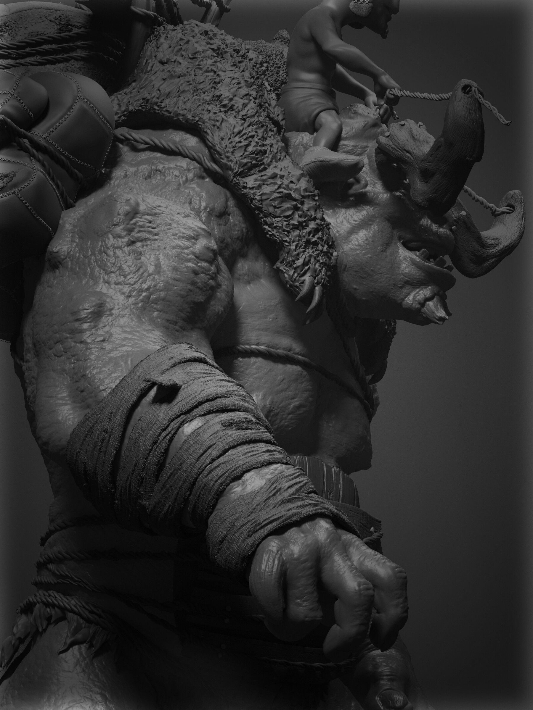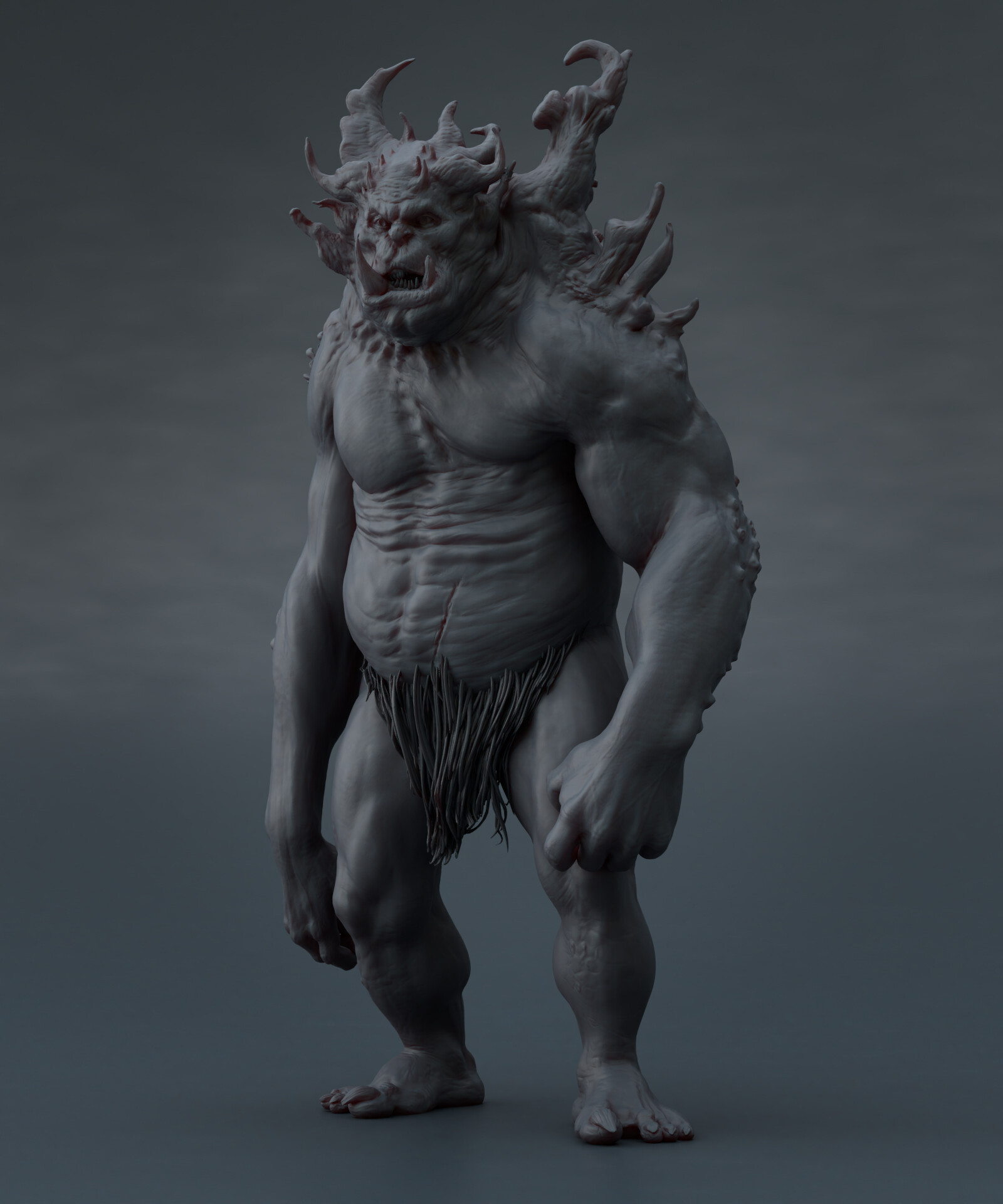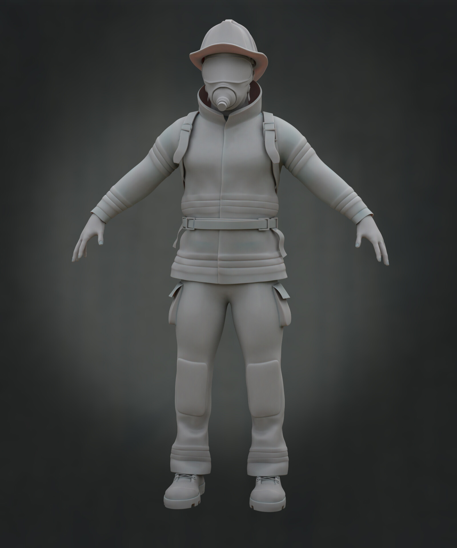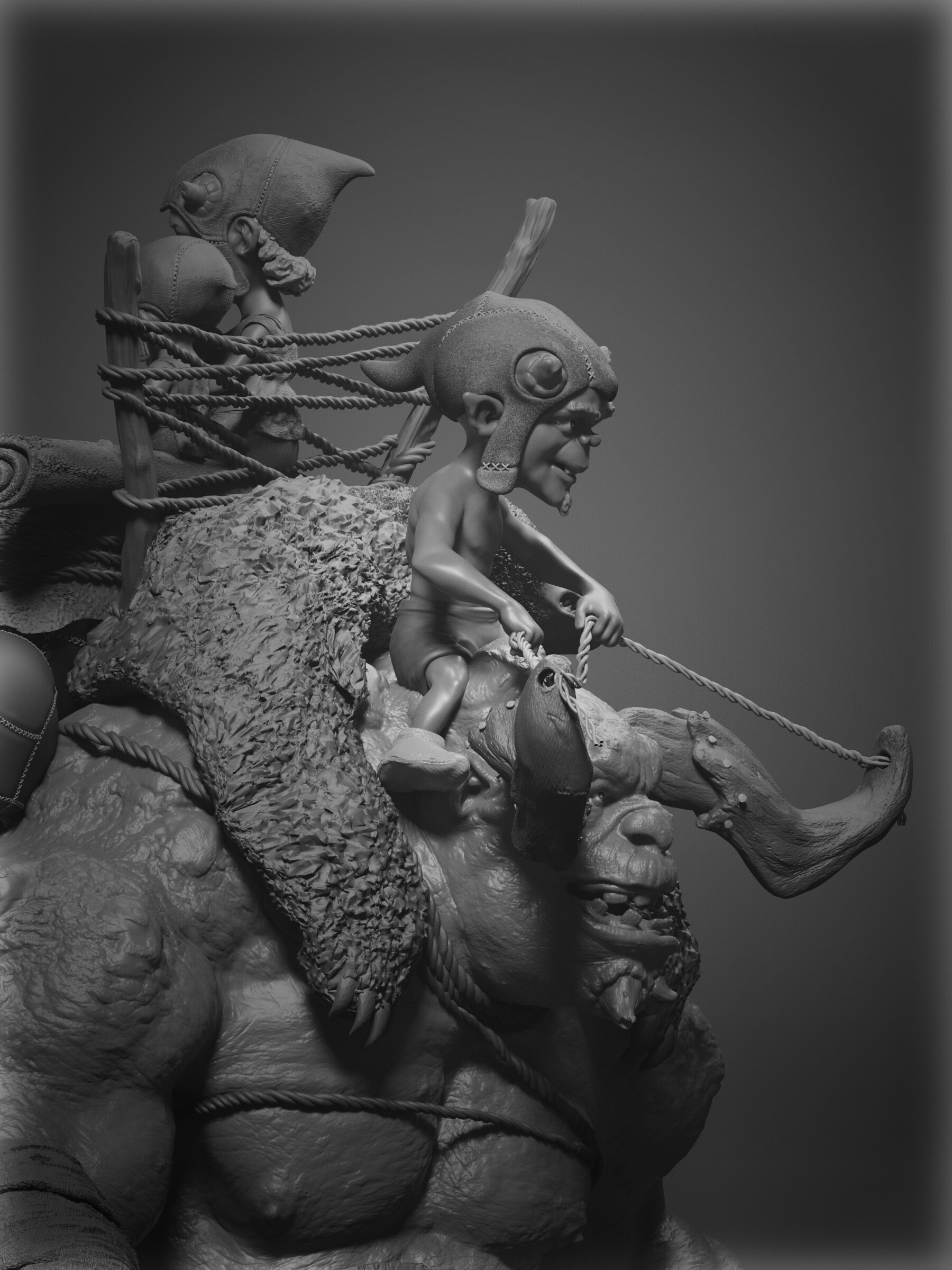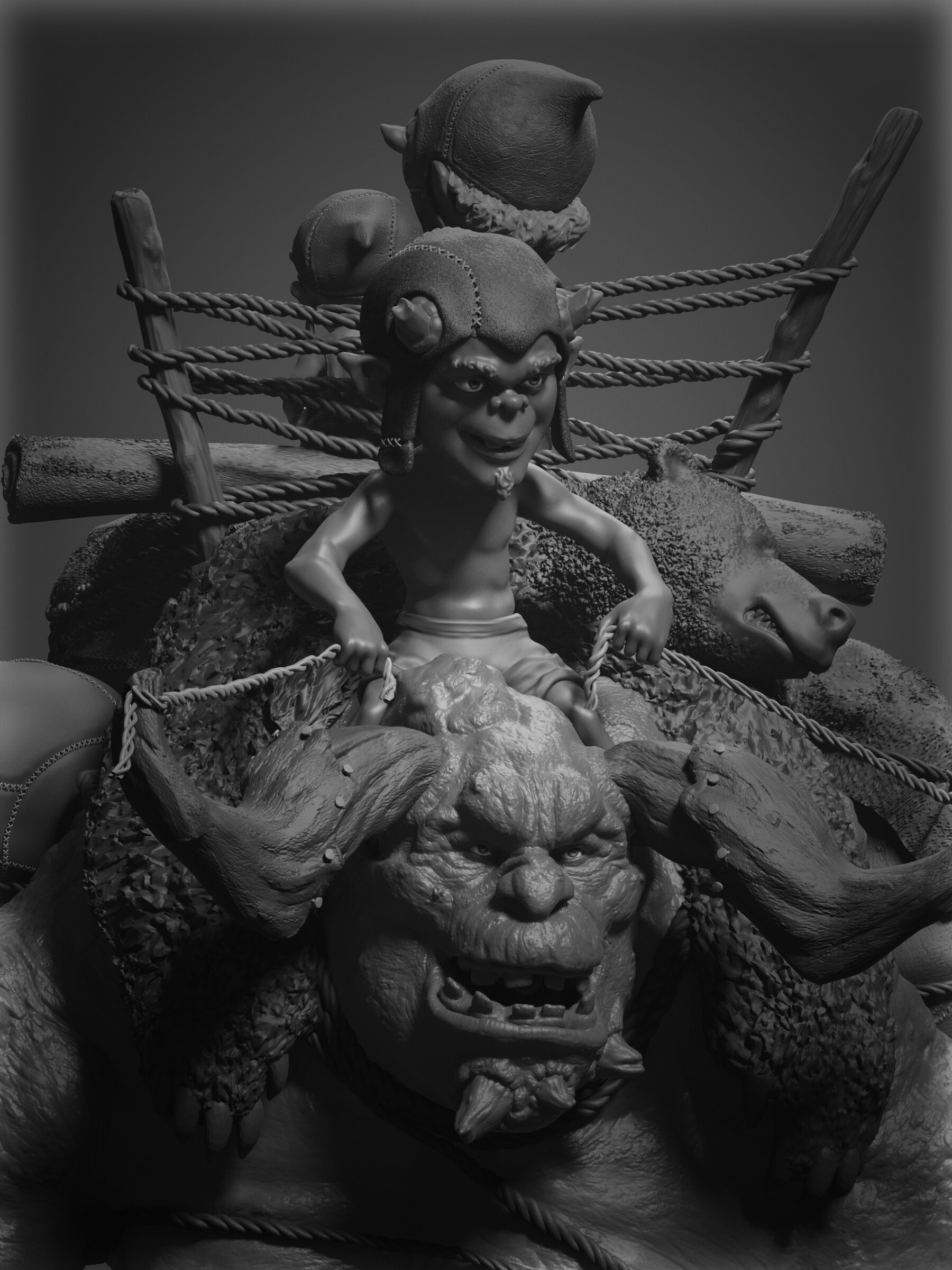 Realicé todas las partes artísticas, desde el concepto hasta el rigging para posar el personaje, pasando por la escultura en alta poligonización, el modelado de la topología baja y la texturización.
