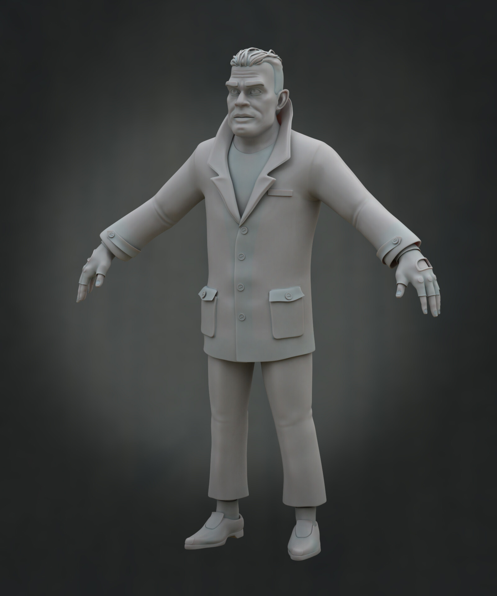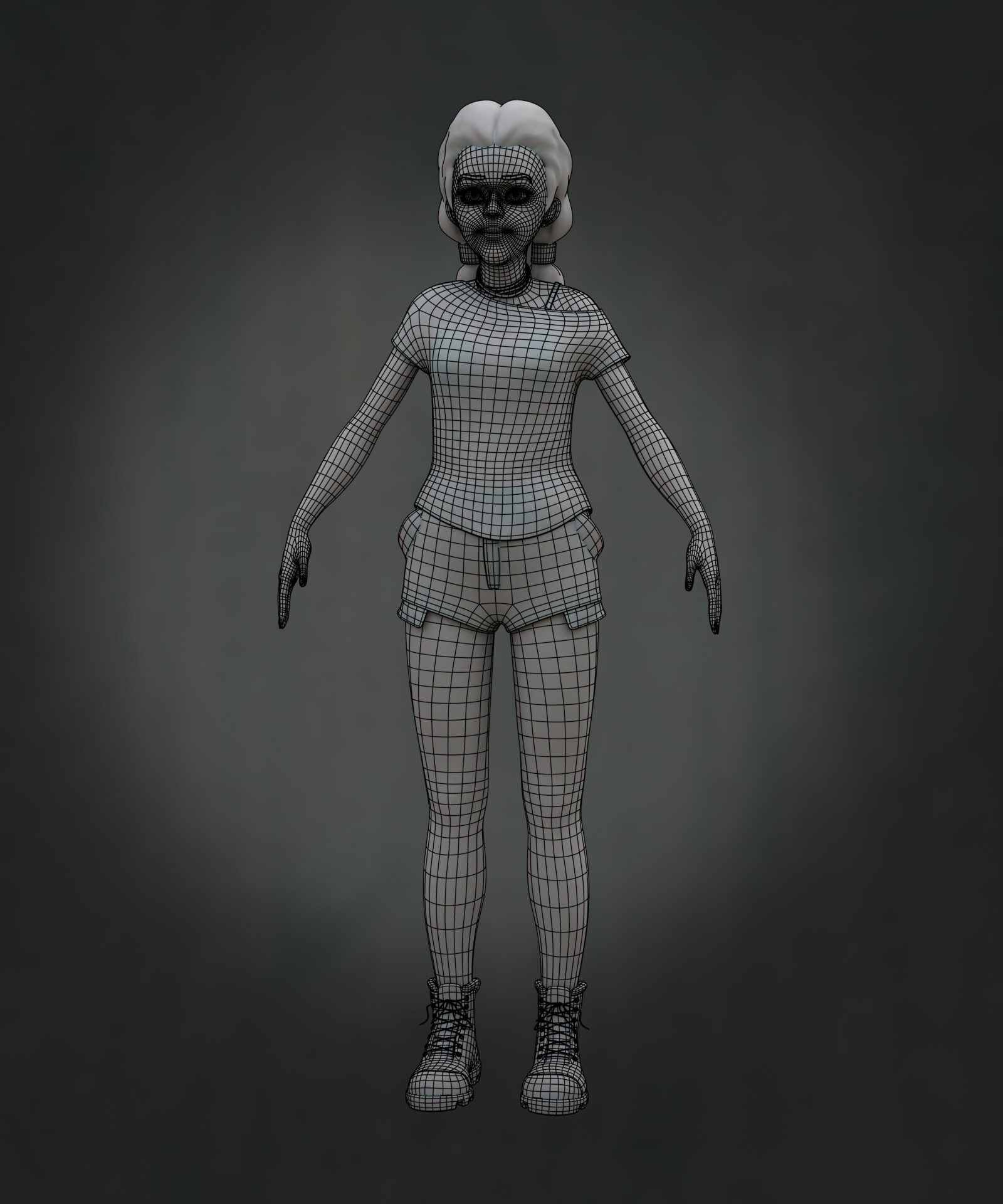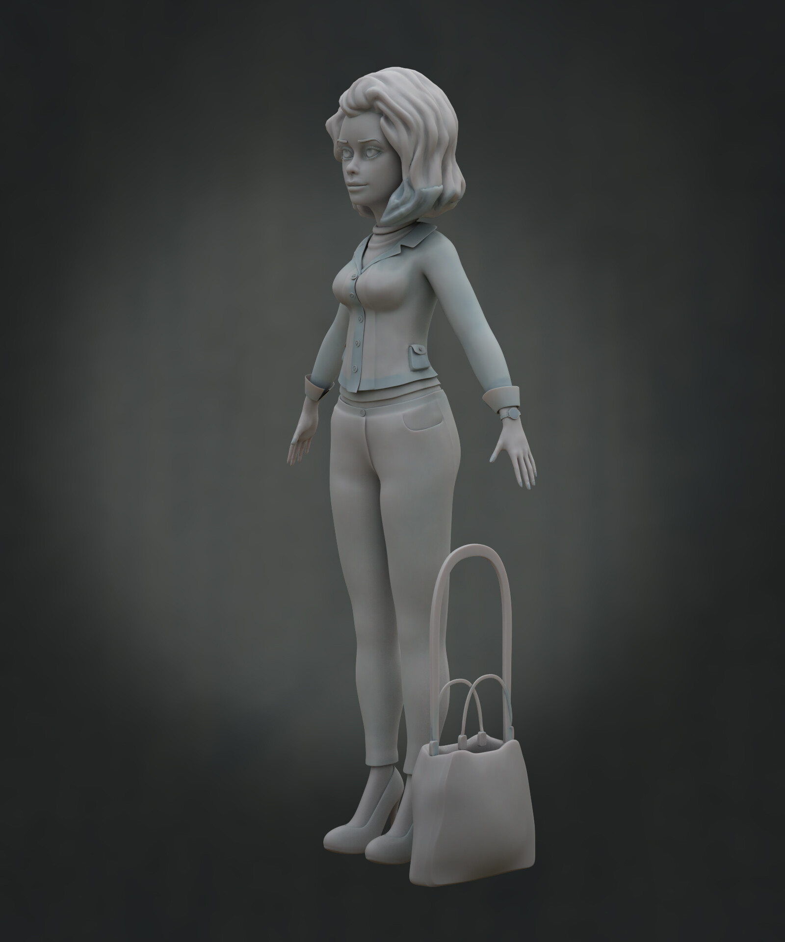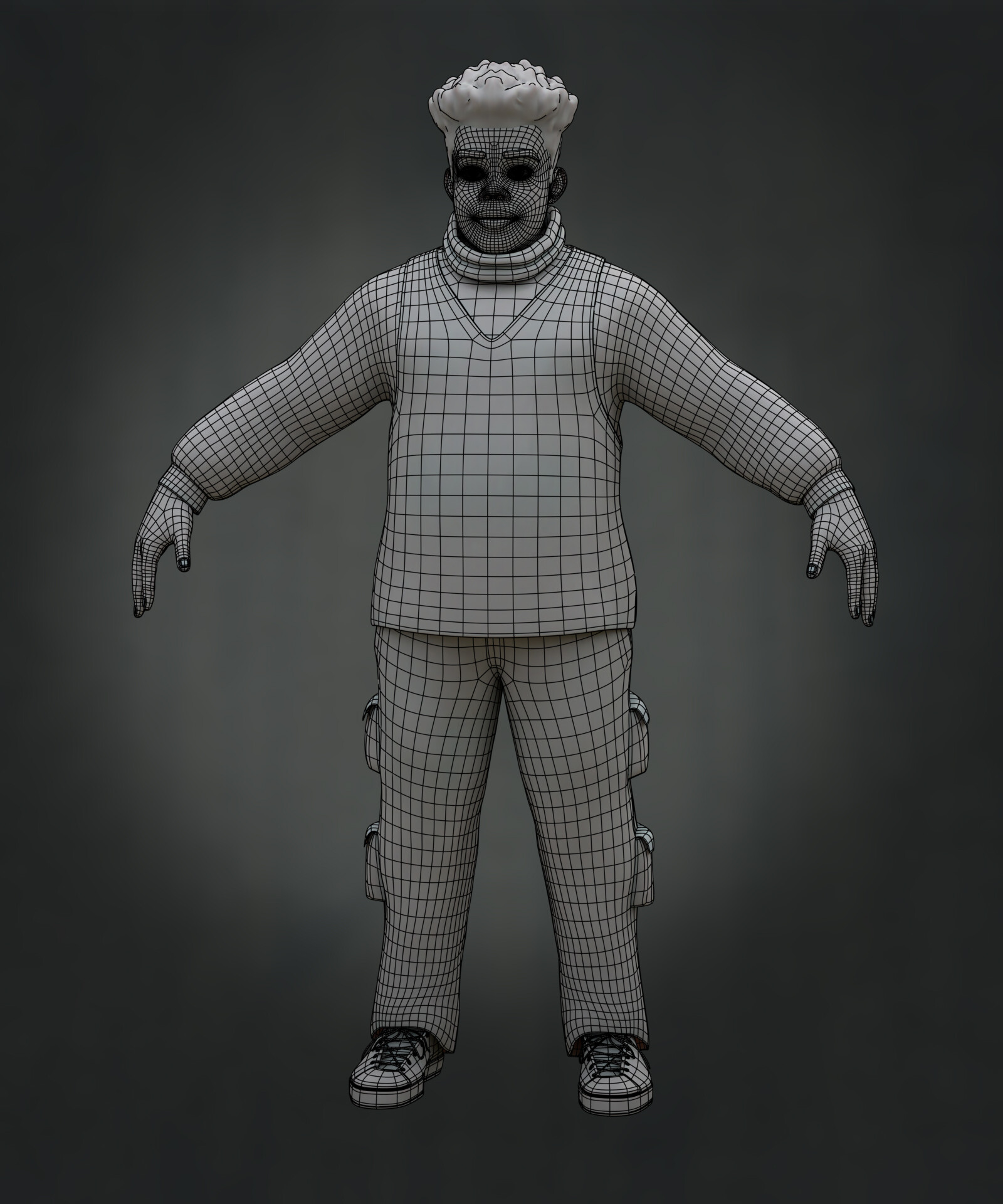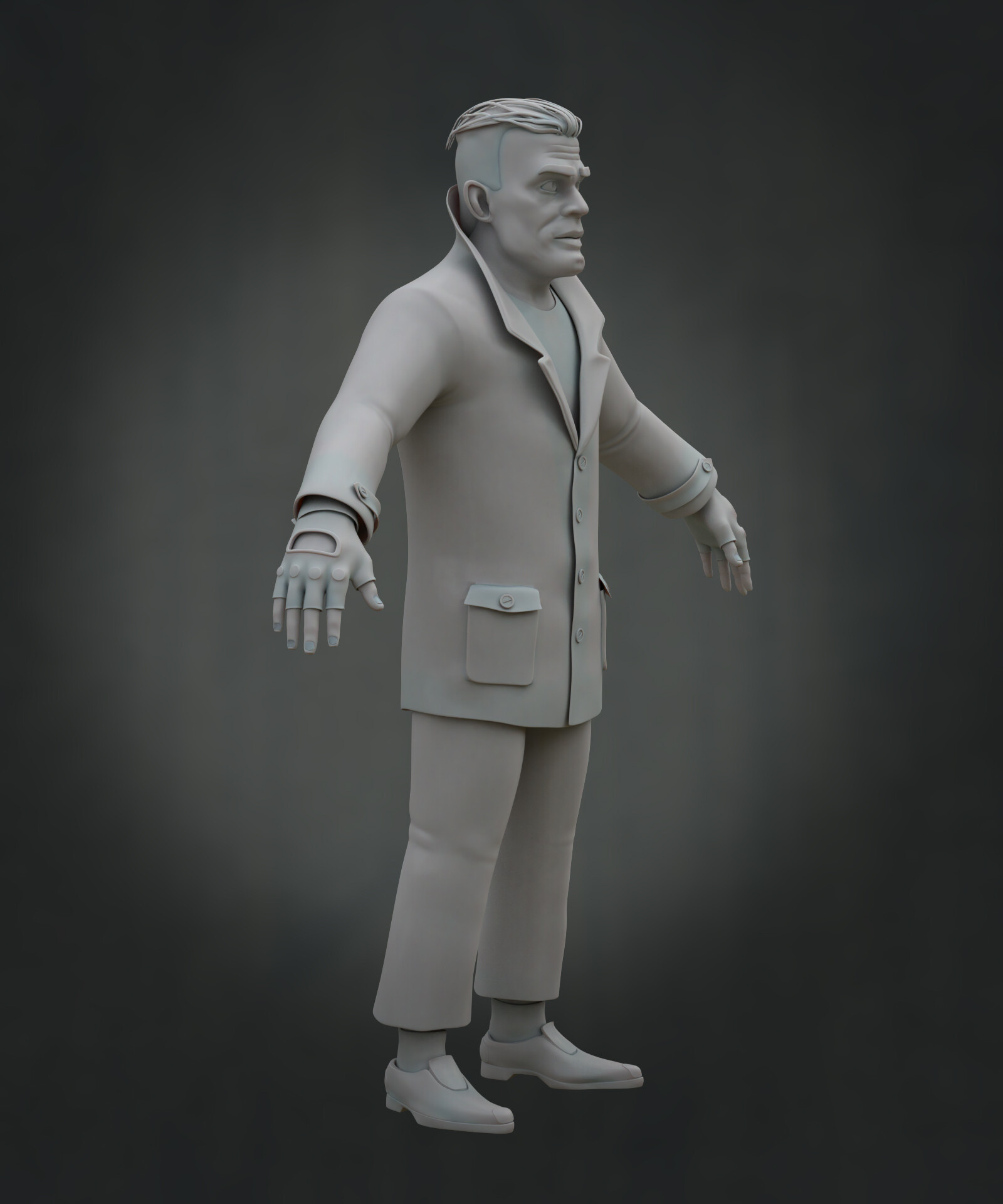 Realicé todas las partes artísticas, desde el concepto hasta el rigging para posar el personaje, pasando por la escultura en alta poligonización, el modelado de la topología baja y la texturización.