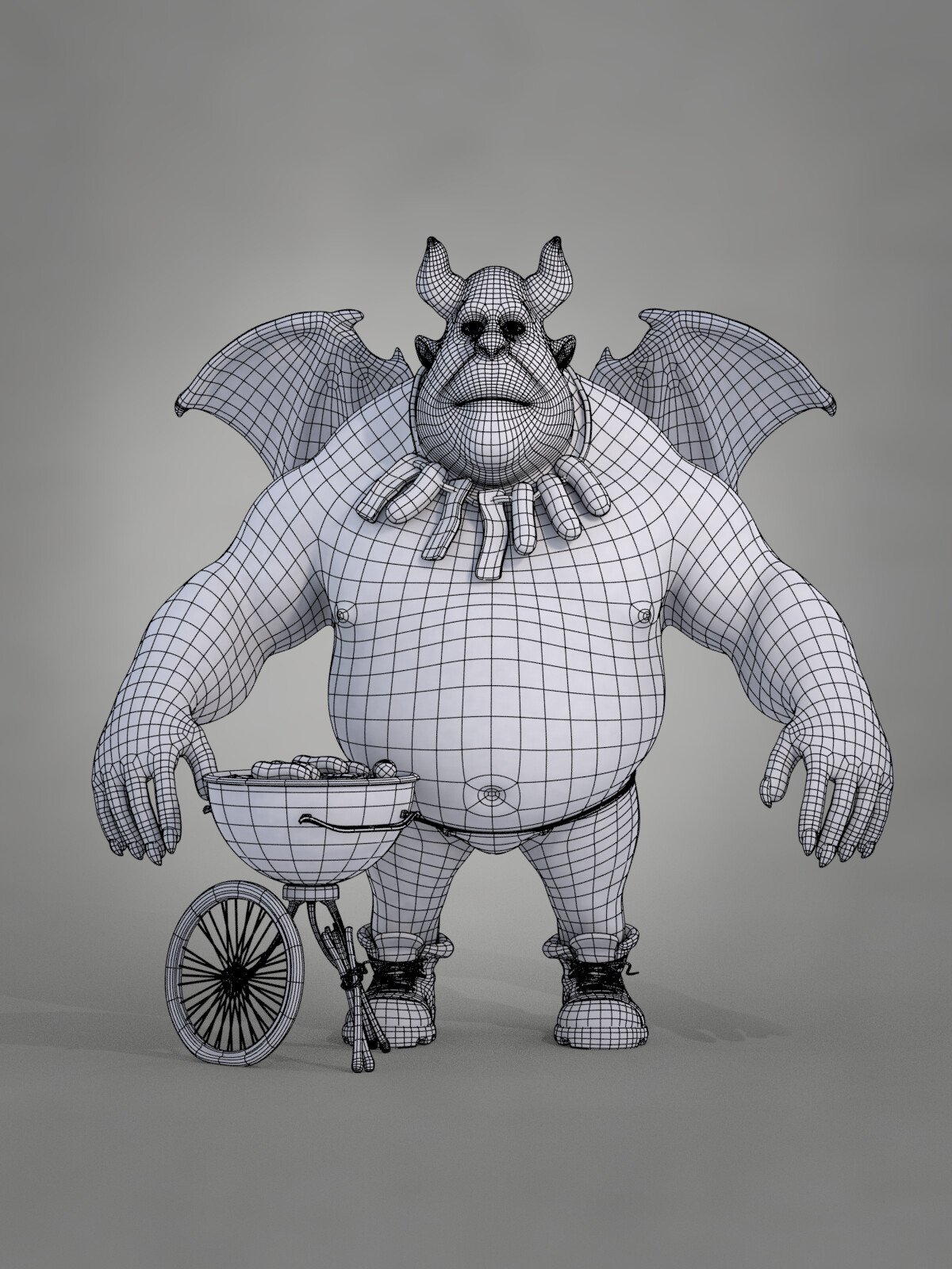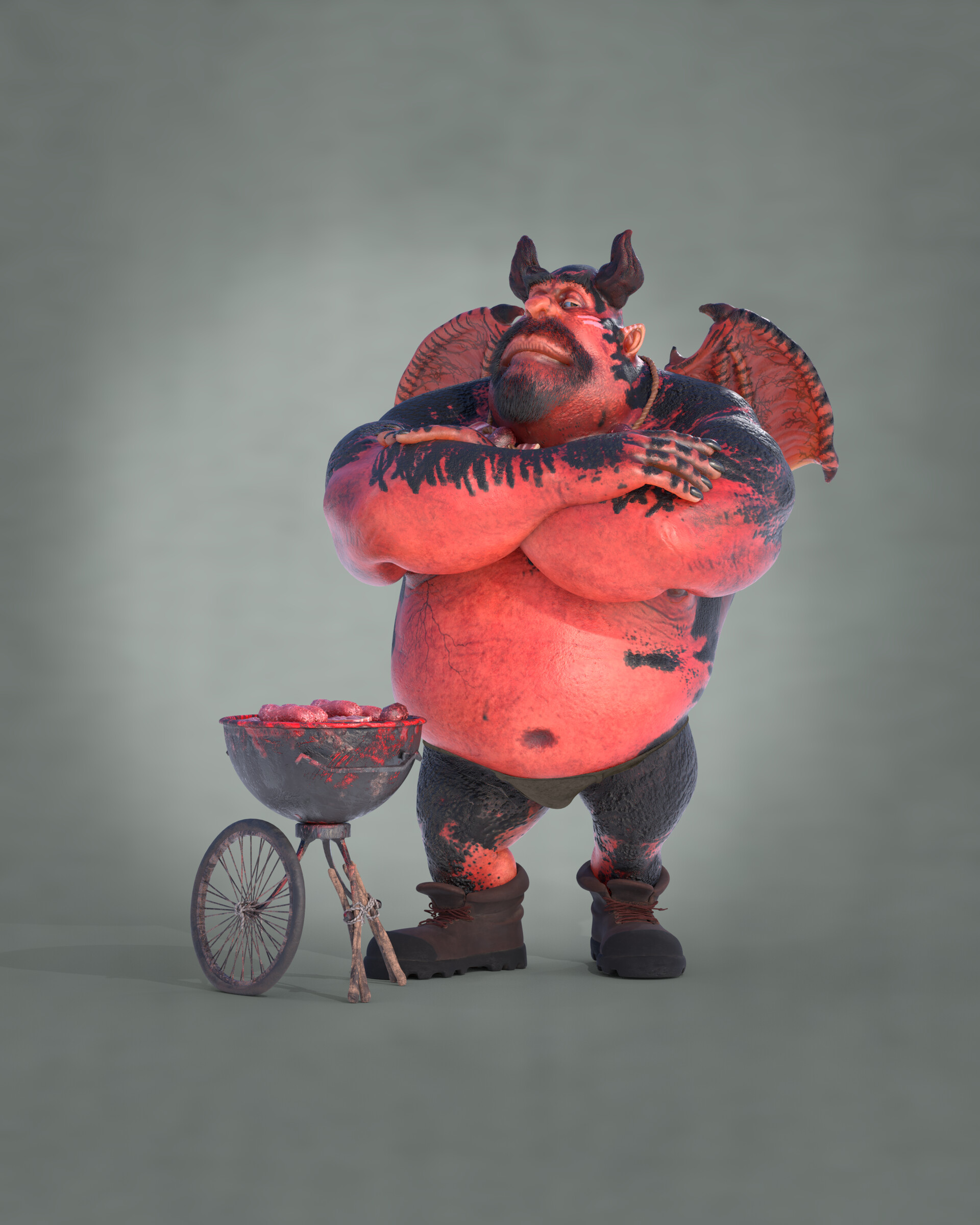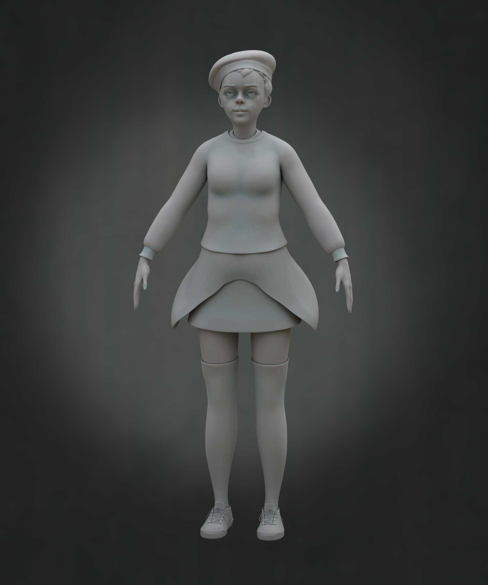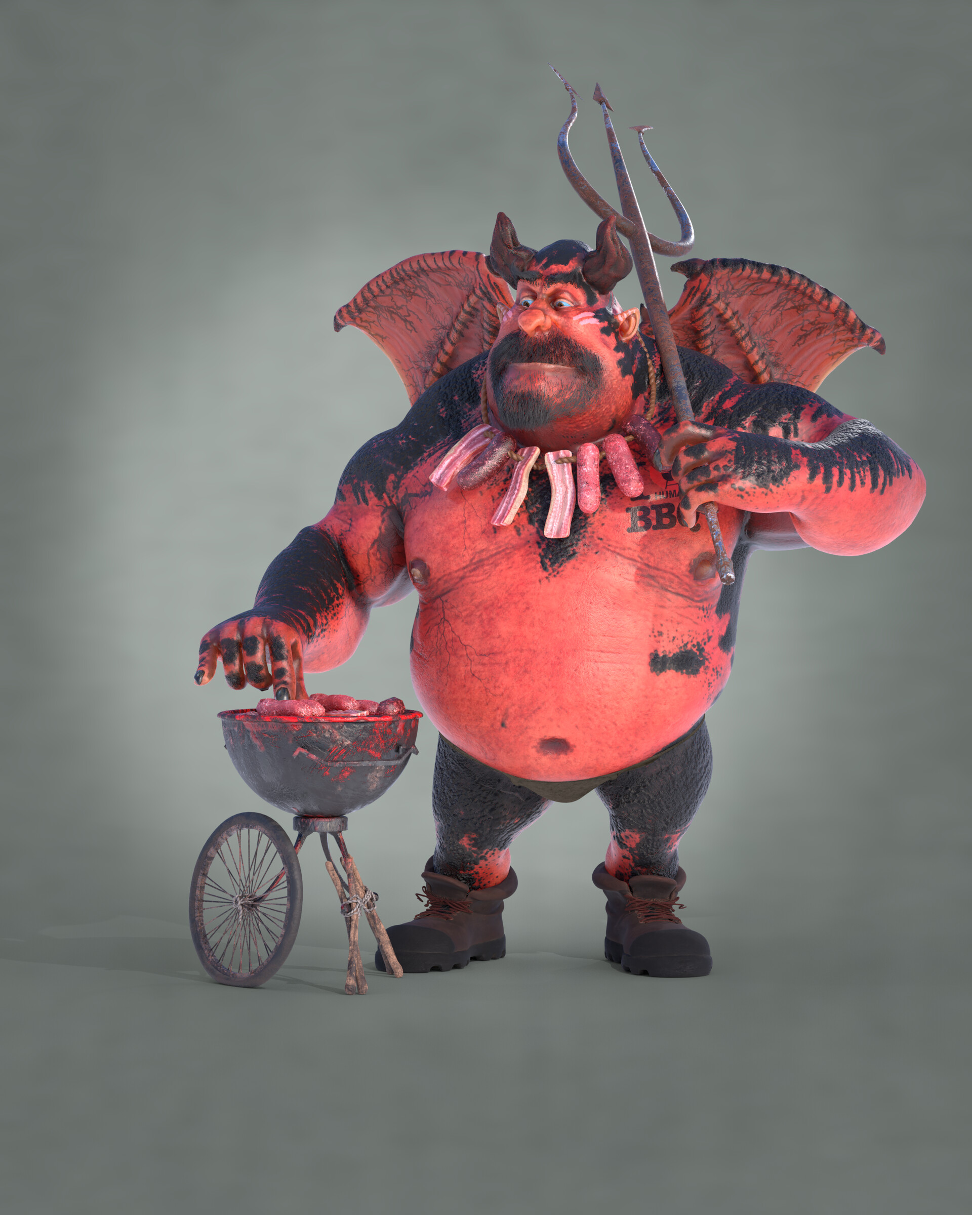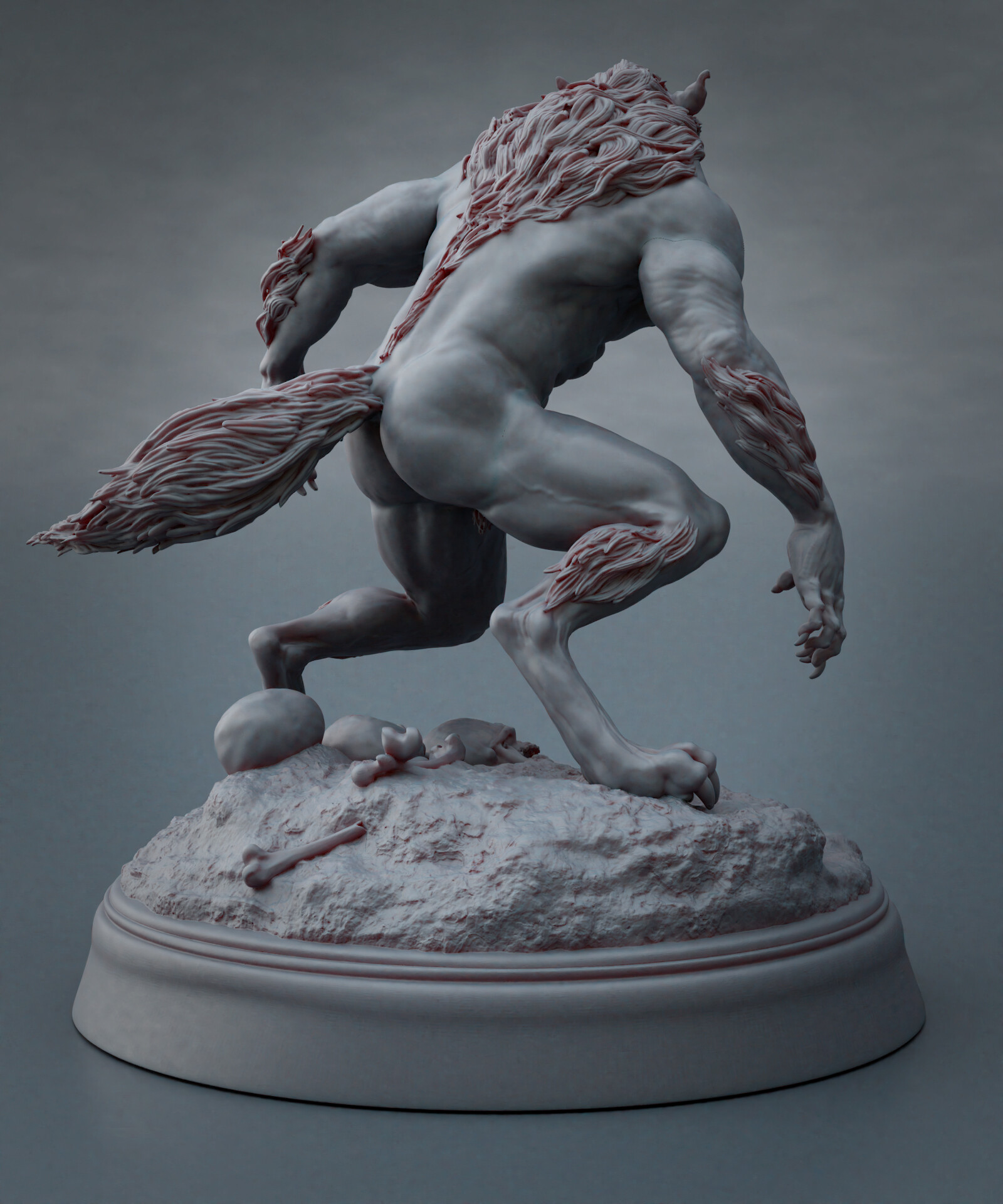 Realicé todas las partes artísticas, desde el concepto hasta el rigging para posar el personaje, pasando por la escultura en alta poligonización, el modelado de la topología baja y la texturización.