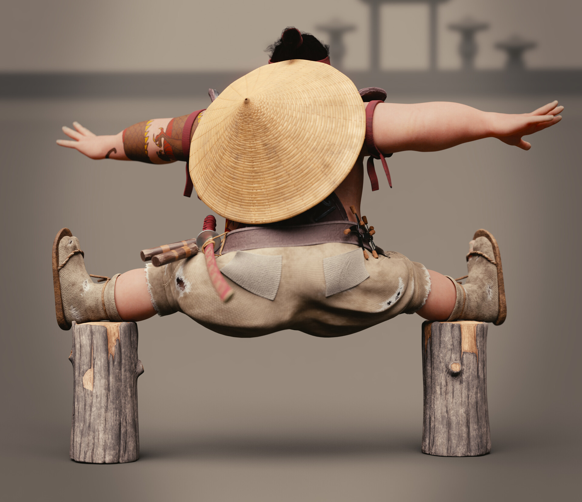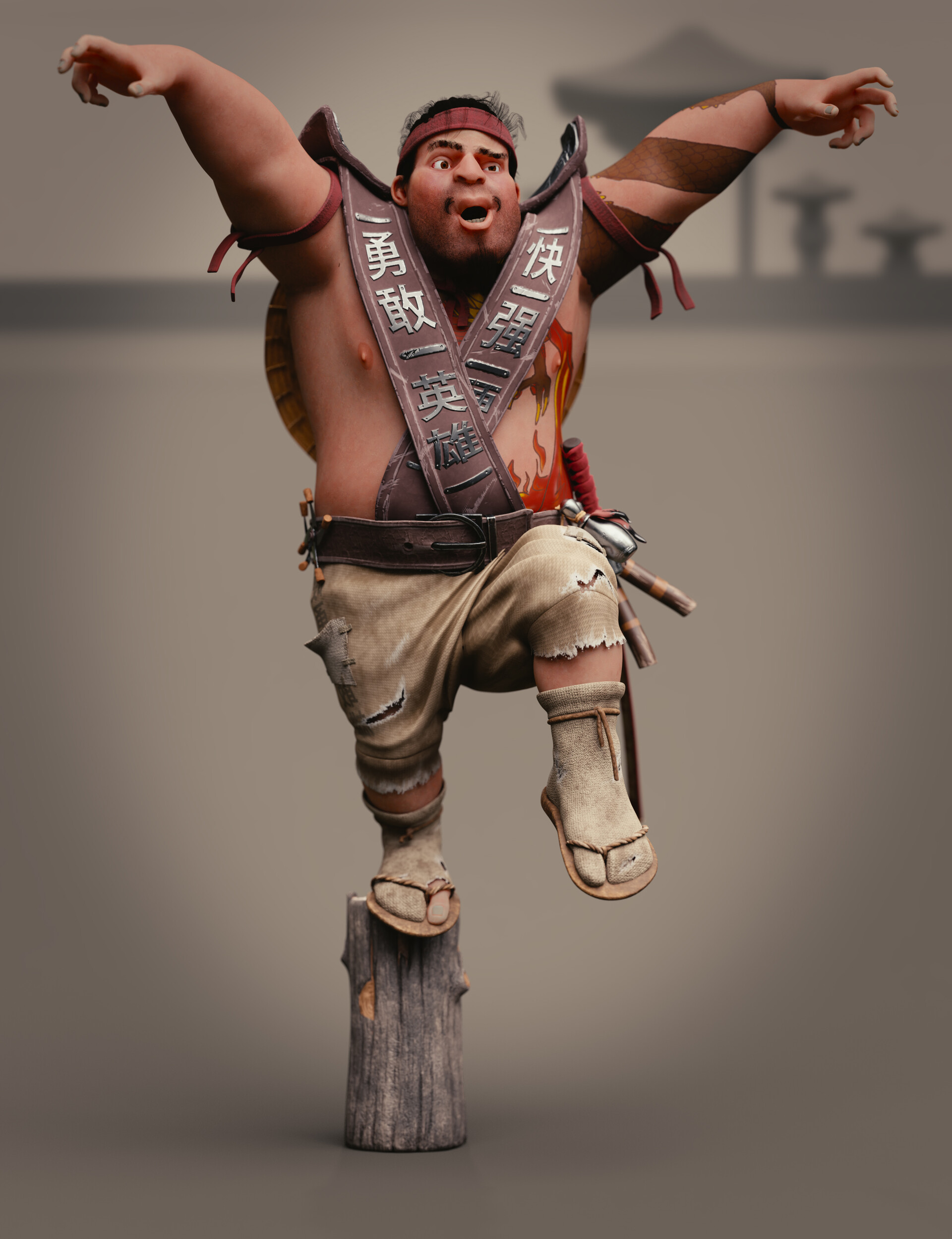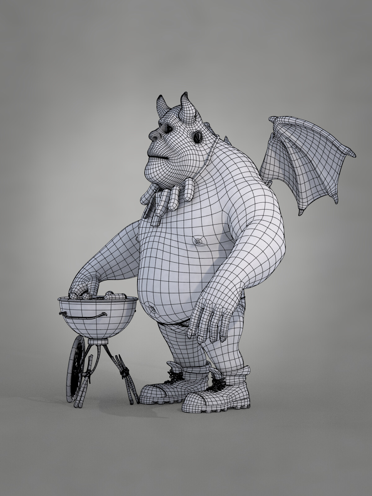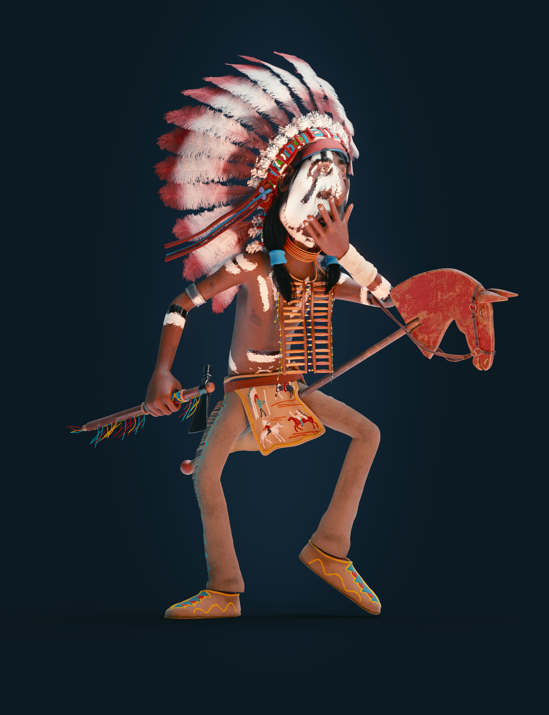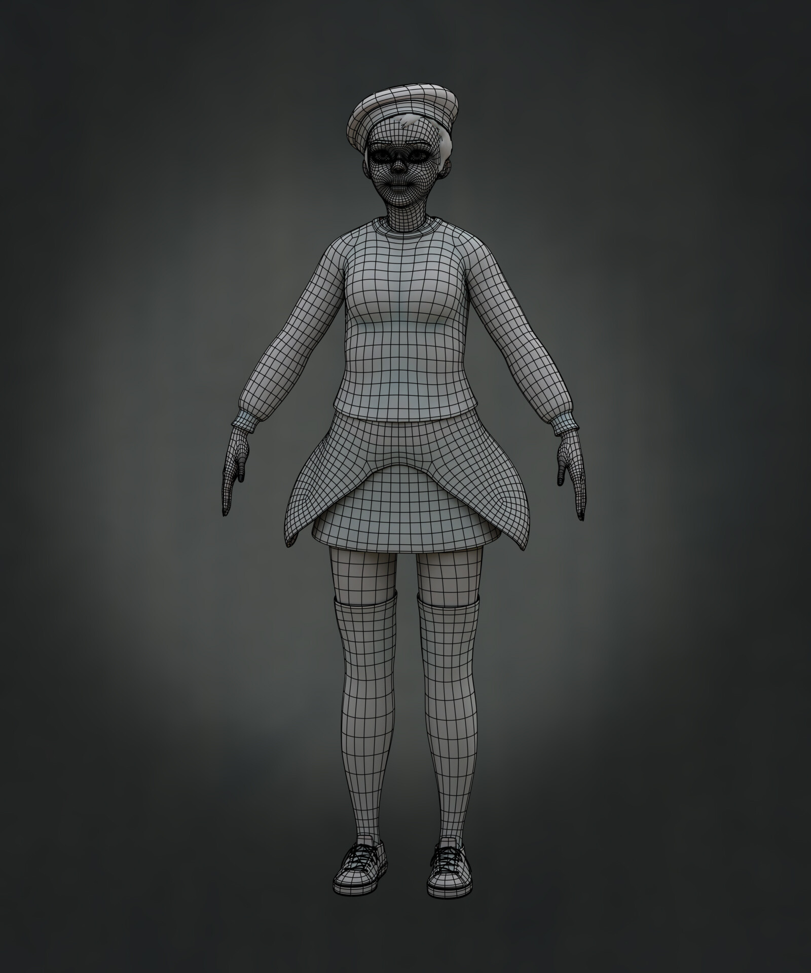 Realicé todas las partes artísticas, desde el concepto hasta el rigging para posar el personaje, pasando por la escultura en alta poligonización, el modelado de la topología baja y la texturización.